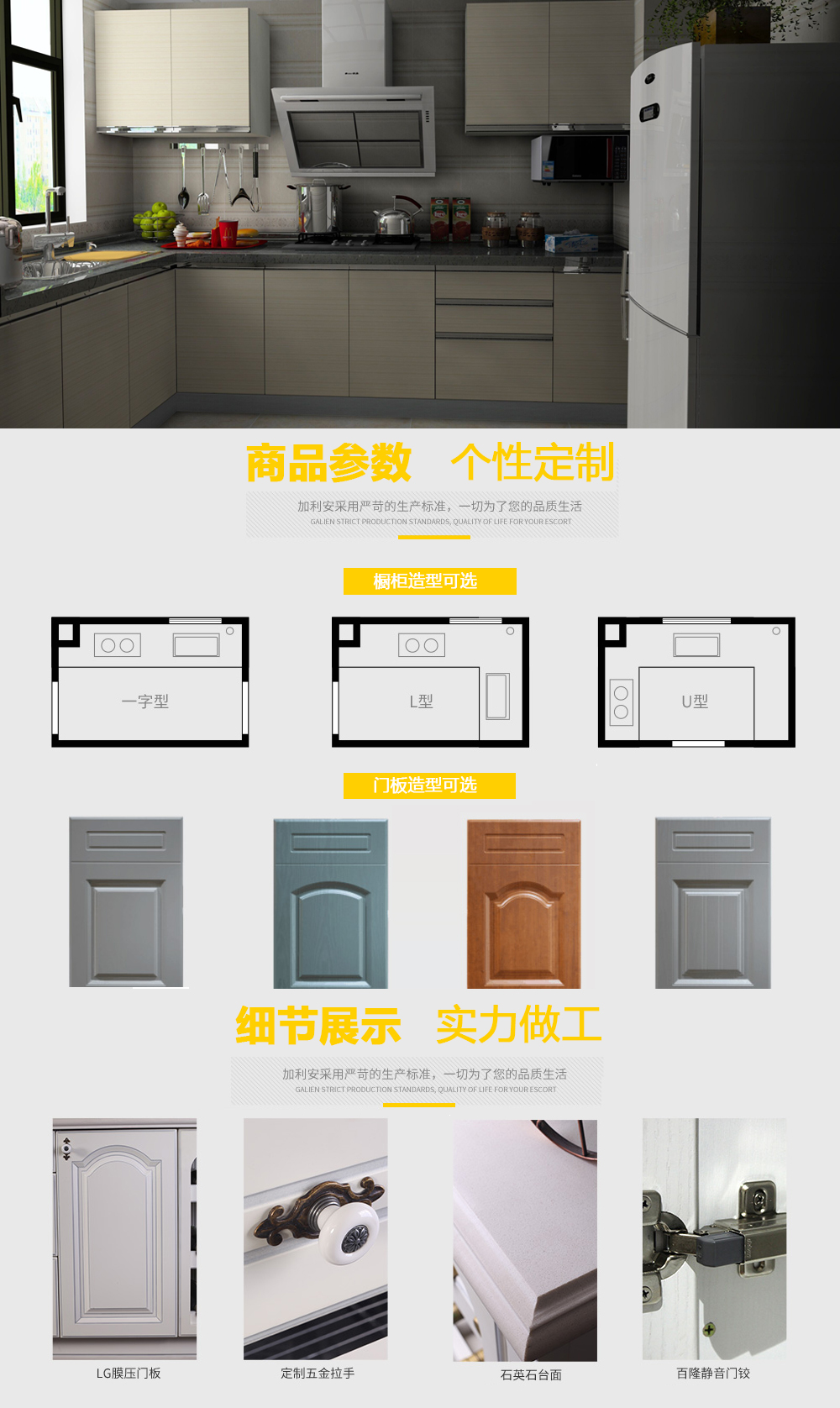 歡迎來(lái)到金櫥世家家具官網(wǎng)!美晶板不怕刀劃.硬度高,易加工。質(zhì)感細(xì)膩.色彩多樣,防水防潮,高亮度,易清潔,耐腐蝕、外用鋁臺(tái)金封邊,美觀大方,視覺(jué)沖擊力強(qiáng)等優(yōu)點(diǎn),立體效果好??箘澓?、綠色環(huán)保、高光、抗重壓、阻燃、防潮、耐老化。